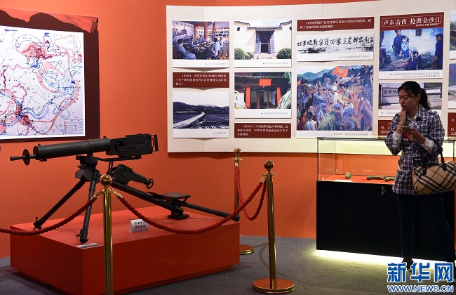 10月20日,观众在展览上参观。 近日,中共云南省委宣传部、中共云南省委党史研究室等举办以“弘扬长征精神 决胜全面小康”为主题的云南省纪念红军长征胜利80周年主题展览。 新华社记者 陈海宁 摄