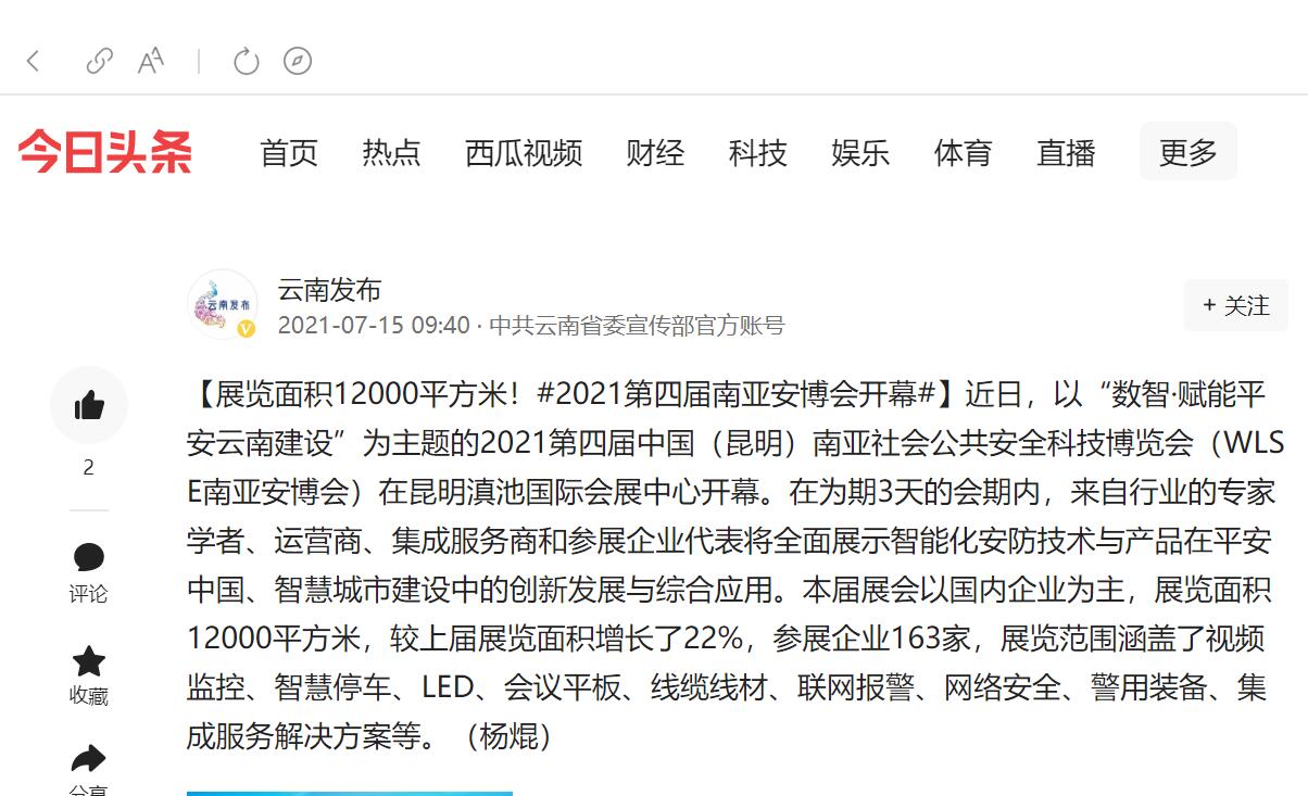 展会的成功举办离不开多年来一直支持和关心帮助我们的众多单位和新闻媒体界的朋友。2021第四届南亚安博会得到了中共云南省委宣传部、昆明市人民政府、昆明市商务局、昆明市投资促进局、中国安防协会、深圳安防协会、云南日报、云南卫视、都市条形码、春城晚报、千家网、安防知识网、云南网、新浪网、昆明日报等200余家单位和新闻媒体的积极宣传报道。