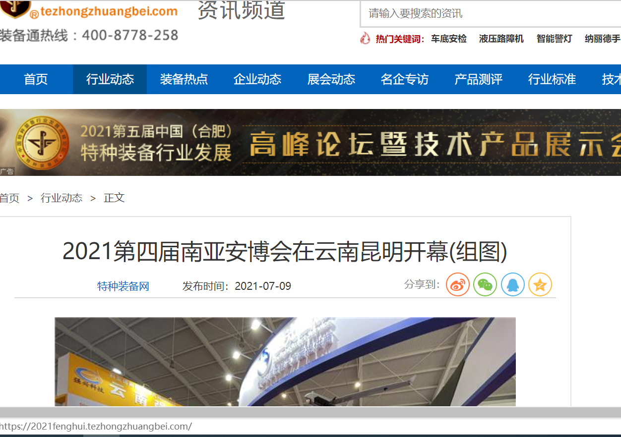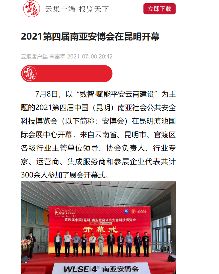 7月8日—10日,以“数智 赋能平安云南建设”为主题的2021第四届中国(昆明)南亚社会公共安全科技博览会在昆明滇池国际会展中心隆重举办。本届安博会由昆明市商务局、云南省智慧城市集成服务商协会、云南省消防协会联合主办,云南万隆会展服务有限公司承办。本次安博会展览面积12000平米,参展企业163家。展会现场采取实名制登记入场,根据展后统计,本届展会来自国内各省市公安单位、安防行业同仁共计12390余人次到会参观交流,实际专业观众为6502人。