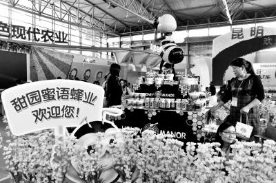 11月5日,在第十四届中国国际农产品交易会上,参观者在蜂蜜制品展台参观选购。当日,第十四届中国国际农产品交易会暨第十二届昆明国际农业博览会在昆明开幕。据了解,本届农交会展出面积约7万平方米,国内外参展企业3000多家,“三品一标”产品近万个,吸引国内外客商超30万人。 新华社发