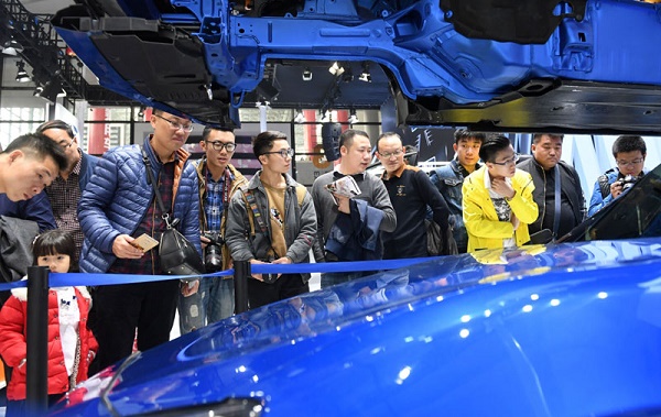 12月3日,汽车消费者和爱好者在展览会现场参观。第九届中国—东盟(南宁)国际汽车展览会于12月2日至6日在广西南宁国际会展中心举行,吸引大批汽车消费者和爱好者前来参观选购。新华社记者 陆波岸 摄