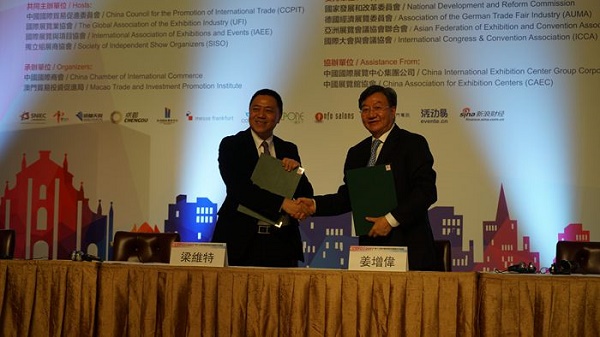 第十三届中国会展经济国际合作论坛(CEFCO 2017)1月12日在澳门开幕。开幕式后举行了中外会展业战略签约仪式,签署了《内地与澳门关于建立促进澳门发展会议展览业联合工作委员会的协议》《澳门展贸协会与国际展览业协会合作协议》等一系列旨在促进澳门会展业发展的文件,内容包括合作开展会展人才培养、培育澳门会议产业优先发展等。