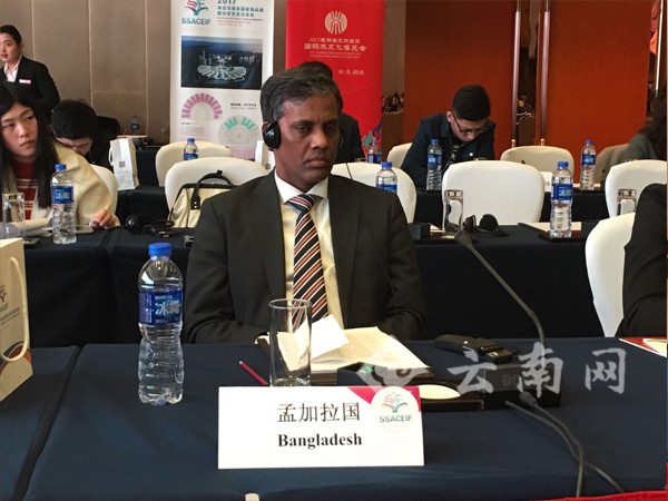 孟加拉人民共和国驻华大使馆商务参赞马福祖尔·阿拉姆·可汗在致辞时说,在前几届中国-南亚博览会上,孟加拉国始终是南博会系列活动的重要参展方之一。当得知2017南亚东南亚国家商品展暨投资贸易洽谈会将继续以往南博会的传统,他表示非常高兴。