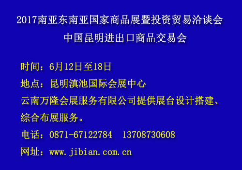 2017南亚东南亚国家商品展曁投资贸易洽谈会由中国国际商会、南盟工商会、中国-东盟中心、南博会暨昆交会秘书处共同主办。
