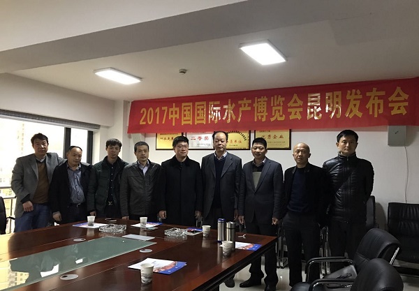 2017年国际水产博览会将于6月18日与您相约魅力湛江!为使更多群众共享盛举,水博会在全国沿海城市和内陆主要水产消费市场进行连续的市场推广活动,以“走出去、请进来”的策略,增强“水博会”与市场、商家的互动,水博会工作组于3月9日由湛江市水产商会余光文会长、廖世明秘书长带队抵达云南银犁冷冻食品物流有限公司,云南、昆明冷冻食品物流协会牵头召集多家商户召开“2017国际水产博览会发布会”。