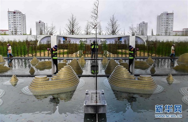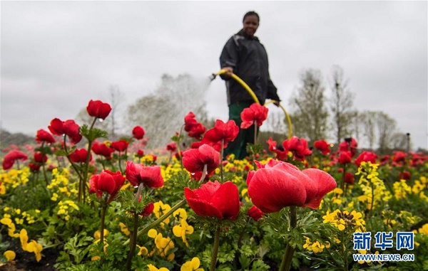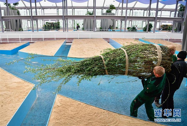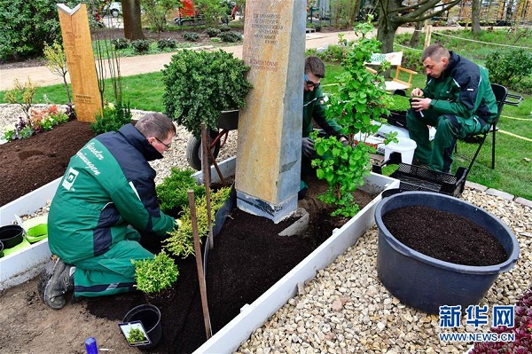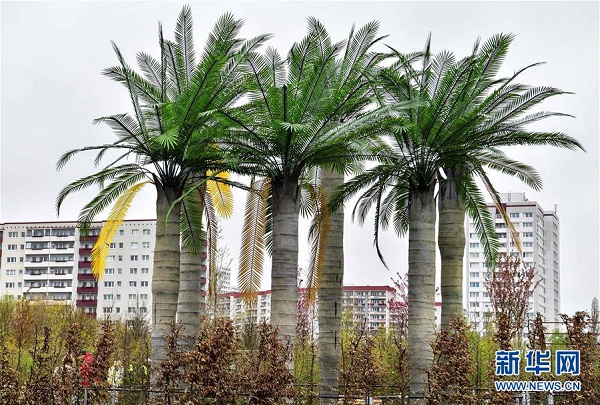 4月7日,在德国柏林,几株人造棕榈树在国际园艺博览会的媒体预展上展出。柏林国际园艺博览会将于4月13日正式展出,10月15日闭幕,预计将吸引约两百万参观者。 新华社/法新