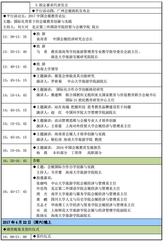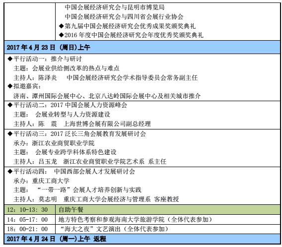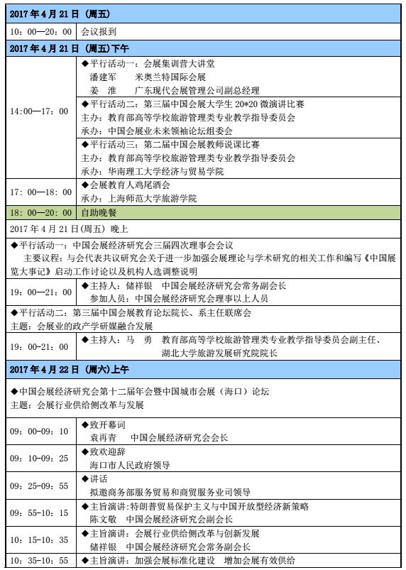 中国会展经济研究会第十二届年会暨中国城市会展(海口)论坛会议日程