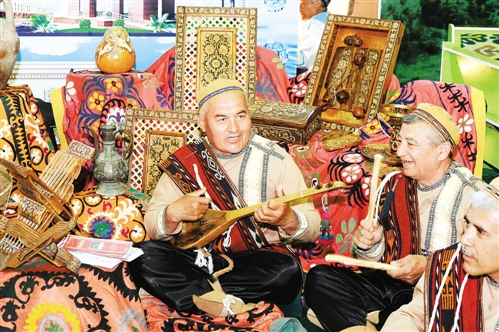 4月13日,在乌兹别克斯坦首都塔什干的国家展览中心,工作人员进行民俗表演。13日,为期两天的乌兹别克斯坦第五届国际旅游展览会在塔什干国家展览中心开幕。新华社记者 沙达提 摄