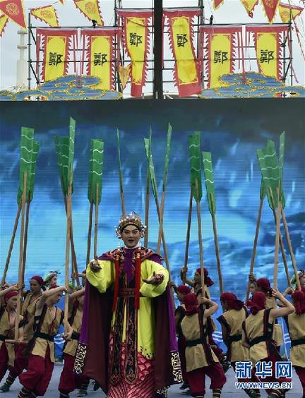 7月11日,当地群众在开幕式上表演歌舞《共织新丝路》。当日,2017中国·昆明郑和国际文化旅游节在郑和故里云南省昆明市晋宁区开幕。 新华社记者 陈海宁 摄