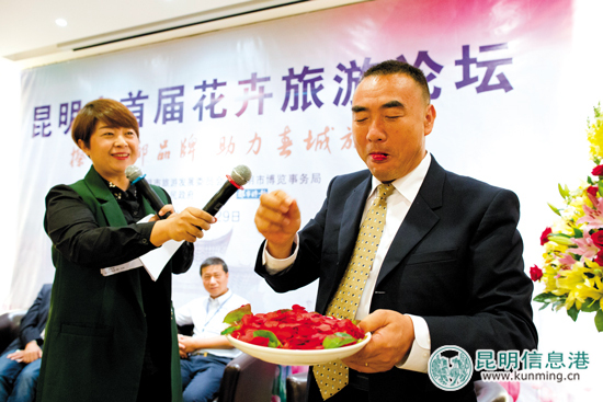 由昆明市旅发委、昆明市博览事务局共同主办,嵩明县人民政府承办的昆明首届花卉旅游论坛,于9月29日在嵩明晨农农博园举行。来自昆明花卉界、旅游界的企业家、专家、学者以及政府主管部门共聚一堂,为昆明的花卉旅游产业问诊把脉,建言献策。