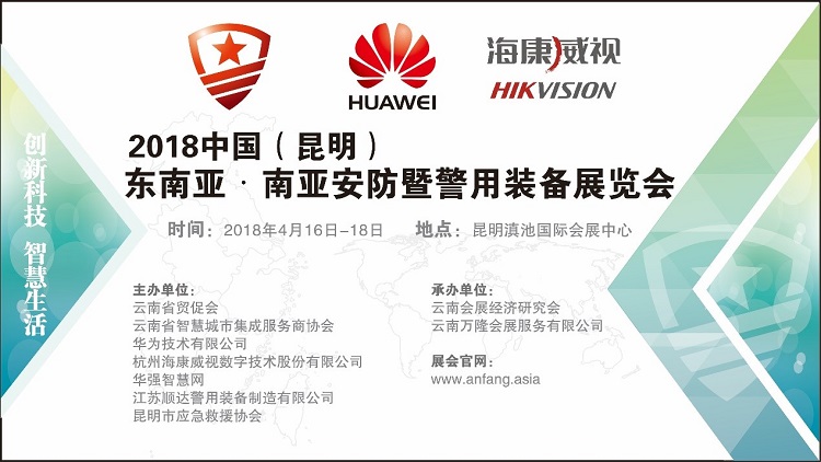 作为东南亚、南亚地区规模较大、专业性较高的安防技术、警用装备展览会,中国(昆明)东南亚·南亚安防暨警用装备展览会由云南万隆会展服务有限公司联合云南省贸促会、云南省智慧城市集成服务商协会、华为技术有限公司、杭州海康威视数字技术股份有限公司、华强智慧网、昆明市应急救援协会和江苏顺达警用装备制造有限公司共同组织并得到众多专业协会和云南政府机构大力支持的区域性国际安防展览盛会,展会将于2018年4月16日至18日在昆明滇池国际会展中心举行。