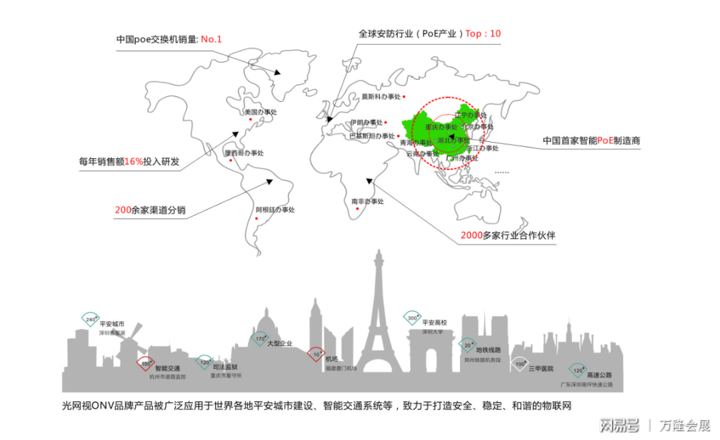国家级高新技术企业,中国首创,世界级领先智能PoE交换机制造商,14年专注于安防传输行业,集网络供电与光通信产品研发、制造、销售、服务为一体,总部位于深圳CBD车公庙泰然大厦,超过5000平方米精细化工厂,设立在工业配套齐全的龙华森裕泰科技园,产品远销5大洲60多个国家,提供遍布全球的分销网络和办事处,为全球客户提供先进的整体传输解决方案及优质的产品与服务,协助缩短企业上市时程,提升全球客户的市场竞争优势。