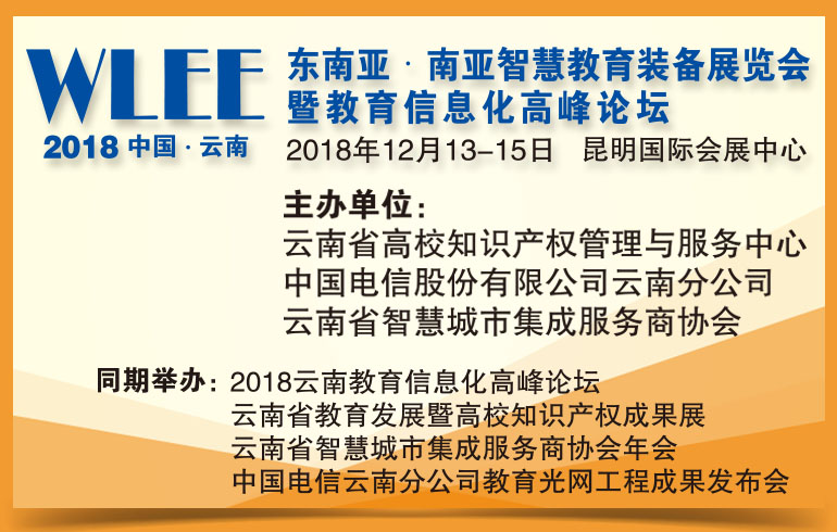 为落实“加快云南省建设中国面向南亚东南亚区域教育辐射中心”、《云南省教育事业发展“十三五”规划》和云南省“十三五”教育信息化发展规划文件精神,实施共建“一带一路”教育行动,加快推进我省与南亚东南亚国家间务实的教育交流合作,形成区域教育对外开放特色的政策方针,由云南省高校知识产权管理与服务中心、中国电信股份有限公司云南分公司、云南省智慧城市集成服务商协会主办,云南省通信服务公司、云南电信公众信息产业公司、昆明东讯科技有限公司、云上云•互联网+产业联盟、云南万隆会展服务有限公司、云南教育装备网承办的的“2018中国(云南)东南亚·南亚智慧教育装备展览会暨教育信息化高峰论坛”(云南教育装备展)定于12月13日-15日在昆明国际会展中心举办,同期举办2018首届云南高等教育博览会(云南高教展),届时将有超过200家1500件创新教育装备及教育信息化产品集中亮相春城,展览面积预期15000平米。