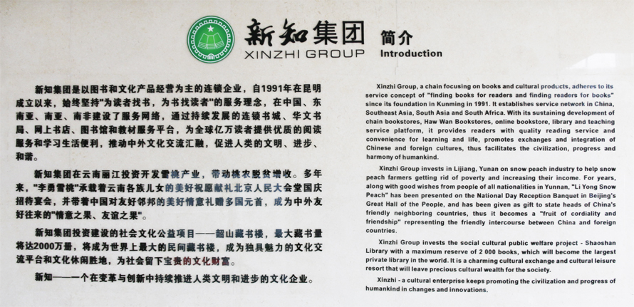 新知集团因书而创立,因书而发展,最终归宿也是书。集团投资建设的社会公益项目韶山藏书楼是云南省文化产业重点建设项目,占地1600亩,建成后最大藏书量约2000万册,将建设成为民间藏书楼。