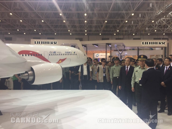 2016年11月1日消息:11日上午,珠海航展开幕。中华人民共和国中央事委员会副主席范长龙视察中国商飞展台。