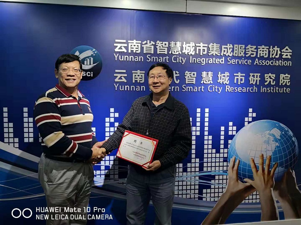 2018年12月5日,受云南省智慧城市集成服务商协会田星原会长、杨智华秘书长,云南现代智慧城市研究院李立公院长邀请,原昆明市公安局科技处李玉龙处长到访协会和座谈交流,协会常务副秘书长孔广政、云南万隆会展服务有限公司总经理张金普参加了座谈会,李处对协会和研究院的工作给予了高度评价,对协会和研究院下一步的工作方向给予了前瞻性指导建议,协会领导隆重邀请李玉龙处长担任协会智库专家,现场颁发了专家聘书。