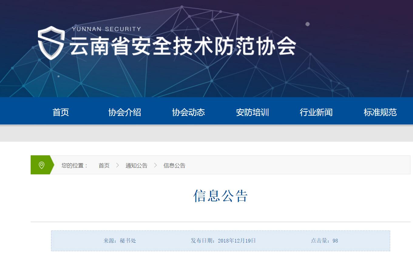 云南省安防协会公告网址链接:http://www.ynaf.net.cn/show_11882