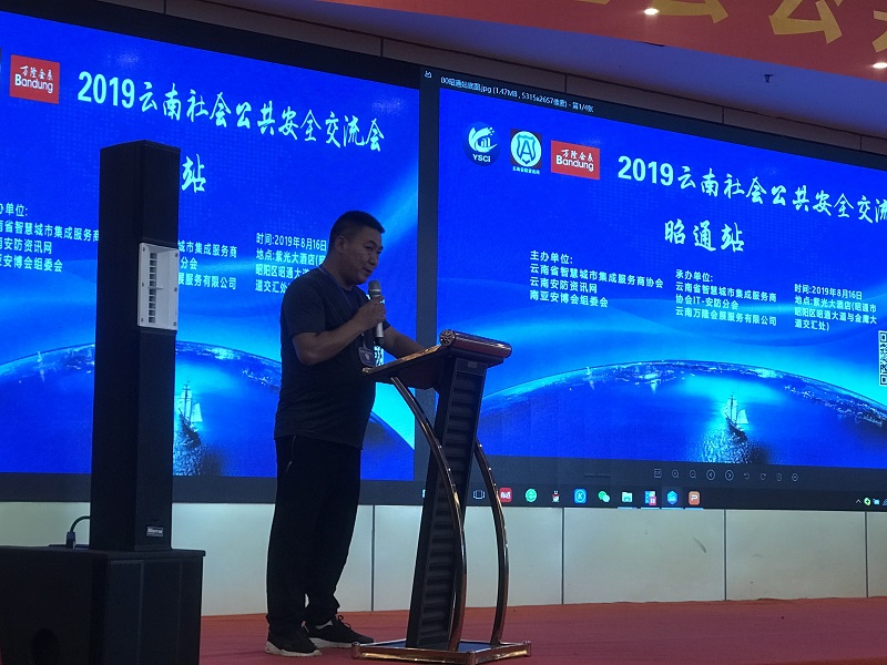 为将先进的智慧安防整体解决方案、安防行业的最新市场分析、热点技术及产品带给我们的主管部门、安防集成商、工程商、经销代理商,进一步提升昭通市安防企业的安防专业技能和服务水平,2019年8月月16日,由云南智慧城市集成服务商协会、南亚安博会组委会、云南安防资讯网联合主办,云南万隆会展服务有限公司承办的2019云南社会公共安全交流会—昭通站在紫光大酒店成功举办,昭通市公安局科信支队、交警支队,昭通市消防救援支队、昭阳区消防大队、中国电信昭通分公司、中国移动昭通分公司、昭通铁塔等单位主管领导出席了会议,全市集成商、供应商、代理商等企业代表共计100余人参加了交流会。
