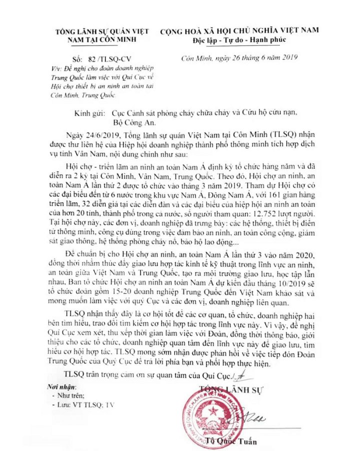 2019年9月9日,云南省消防协会面向全国30余家省市消防协会发函,邀请各消防协会作为东南亚南亚消防应急博览会的协办单位。