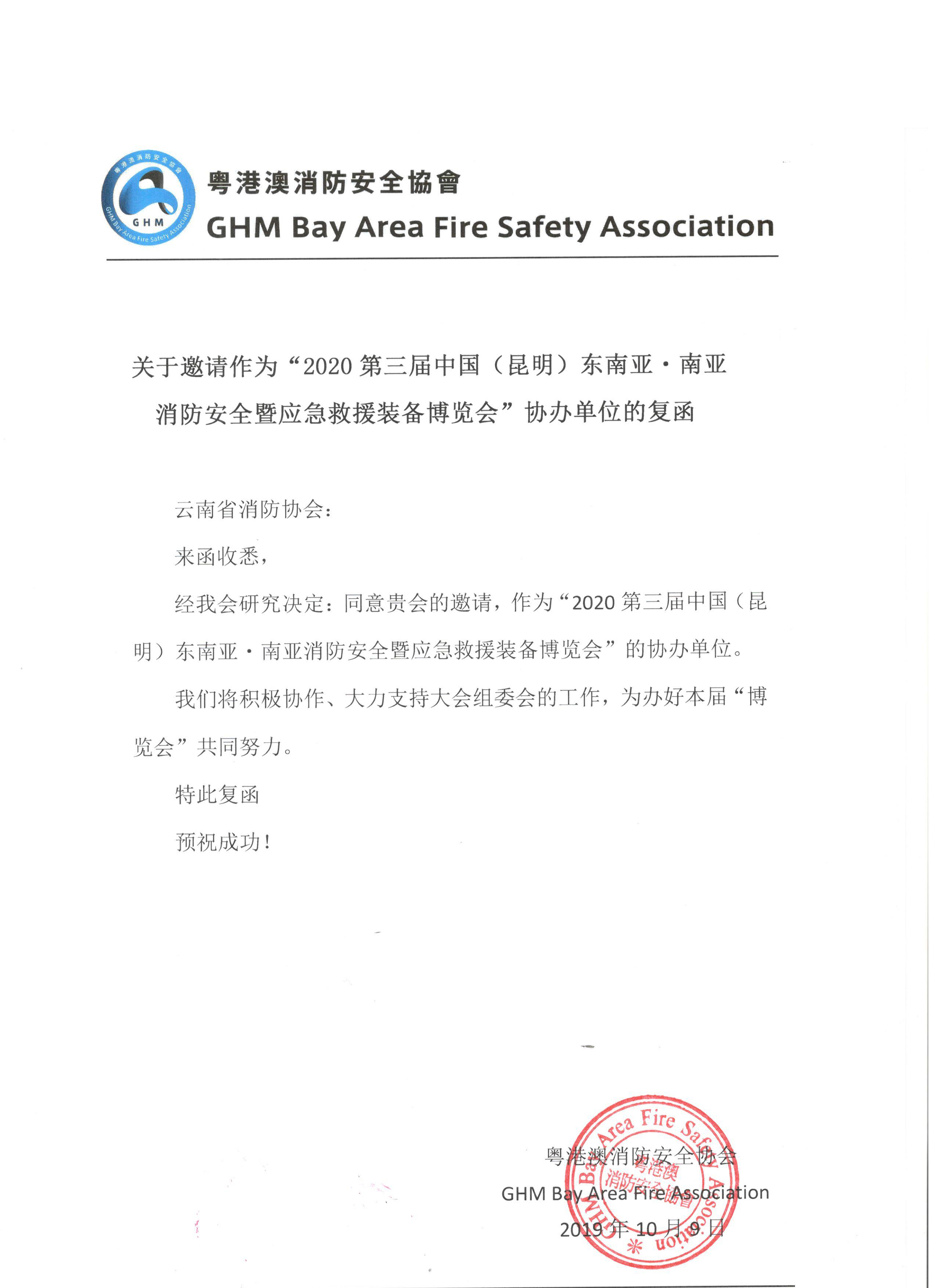 应云南省消防协会邀请,粤港澳消防安全协会日前正式回函,同意作为本届展会的协办单位,并大力支持有关工作开展。