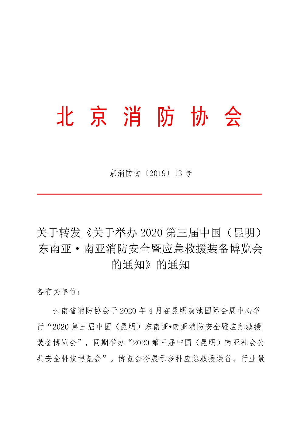 云南省消防协会于2020年4月在昆明滇池国际会展中心举行“2020第三届中国(昆明)东南亚•南亚消防安全暨应急救援装备博览会”,同期举办“2020第三届中国(昆明)南亚社会公共安全科技博览会”。博览会将展示多种应急救援装备、行业最新研究成果,并同期举办多场高规格的行业发展论坛。欢迎有关单位参加、参观展览会。