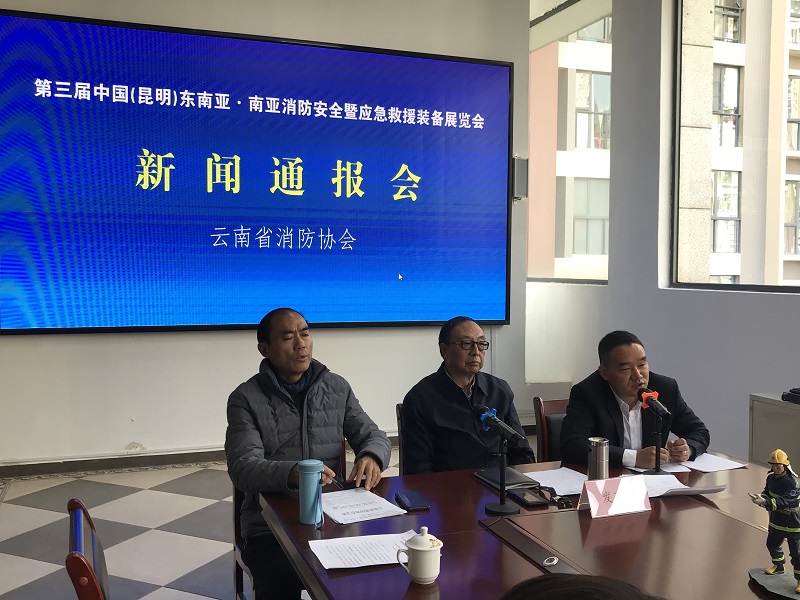 2019年12月18日上午,“第三届中国(昆明)东南亚·南亚消防安全暨应急救援装备展览会”(以下简称昆明国际消防展)新闻通报会在云南省消防协会召开,协会会长洪利川、秘书长王代明、协会各专业委员会的主任委员、协会会展部、参展商代表、采购商代表、20余家媒体代表共计60余人参加了新闻通报会,会议由洪利川主持。